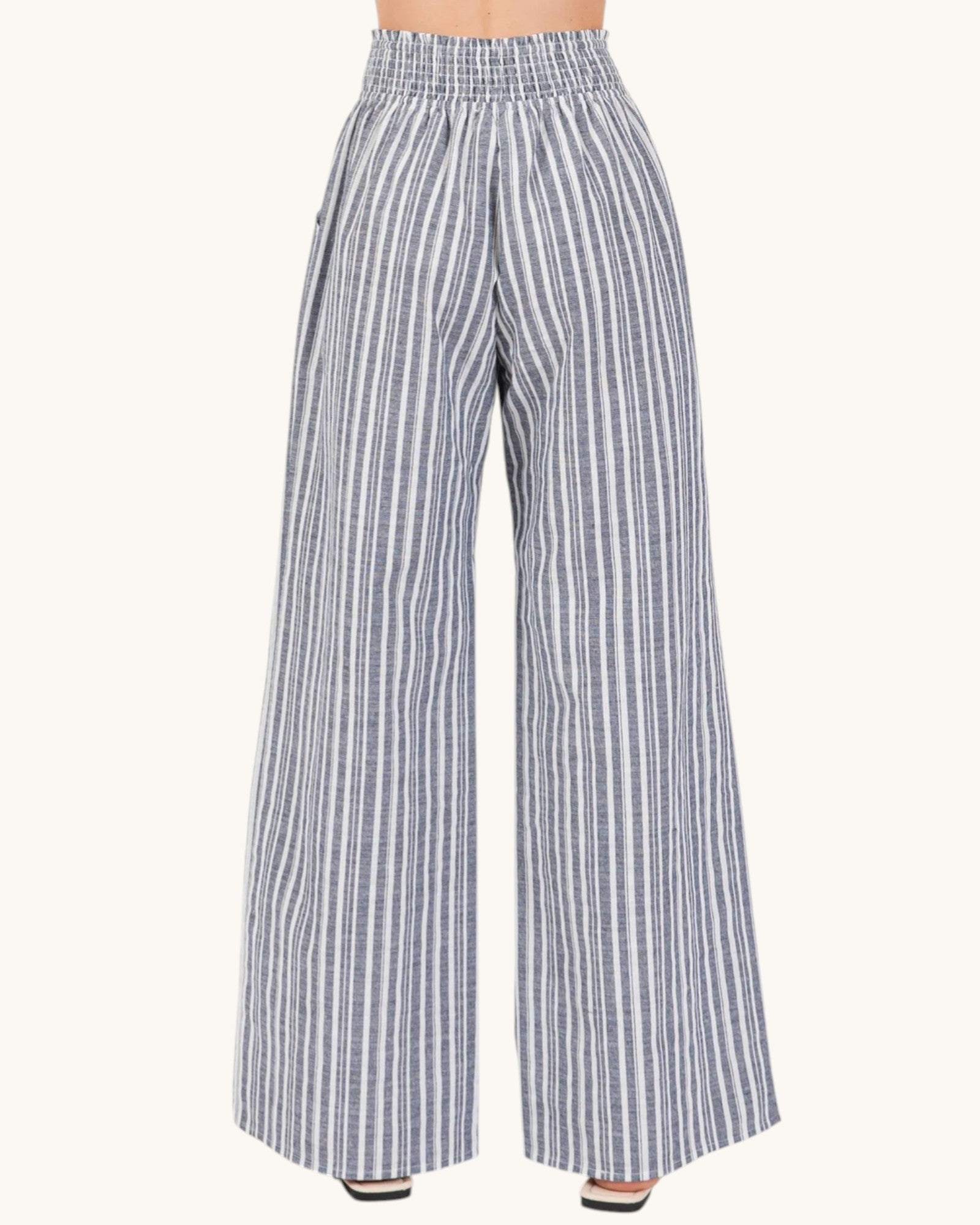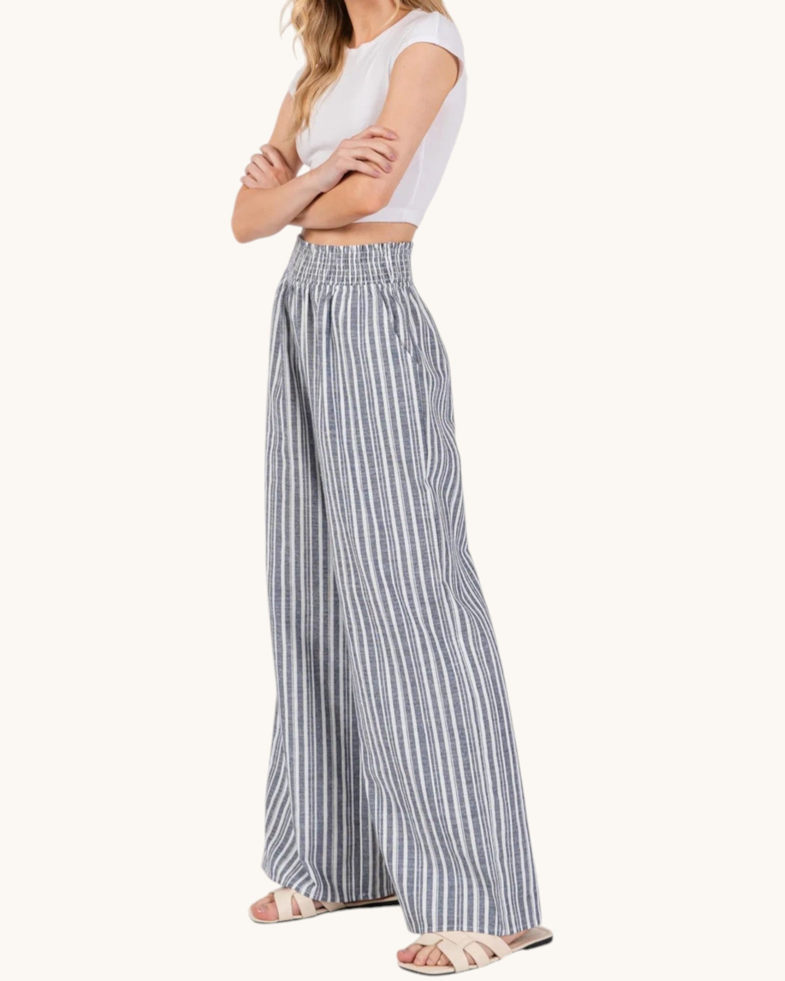 Linen Blend Striped Wide Leg Pants (Navy and Ivory)