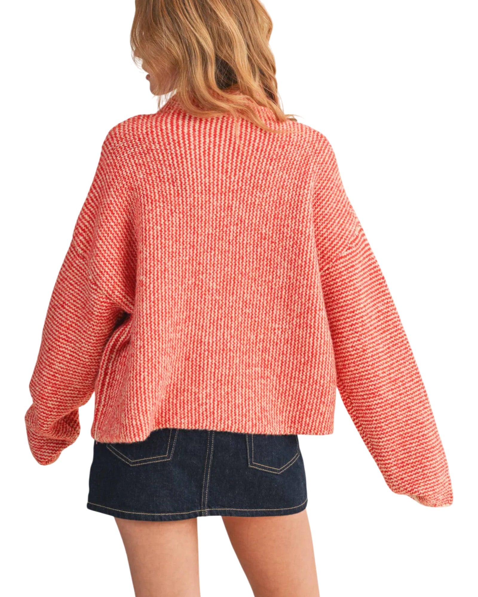 A feel good knit that brings personality and style! The Cozy Red Colorful Buttons Sweater features a textured red and white stripe with a relaxed shape and playful colorful buttons make it stand out while still feeling easy to wear.